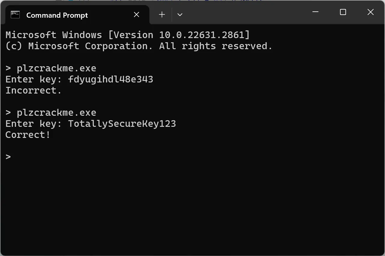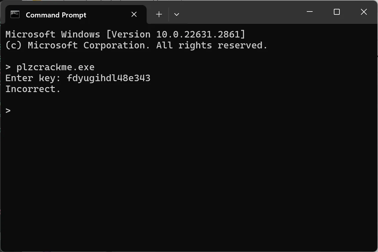 Upon running the crackme, it asks for a key. We need to find the correct key to solve this challenge!