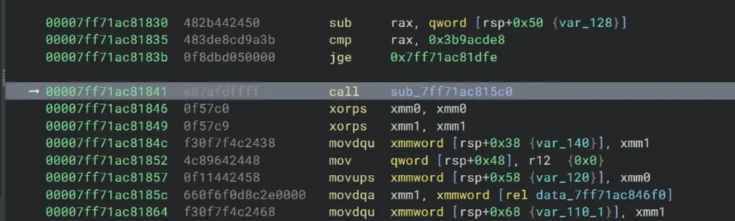 . I did some further stepping and seems like we can safely set a breakpoint directly after sub rax, qword [rsp+0x50]
