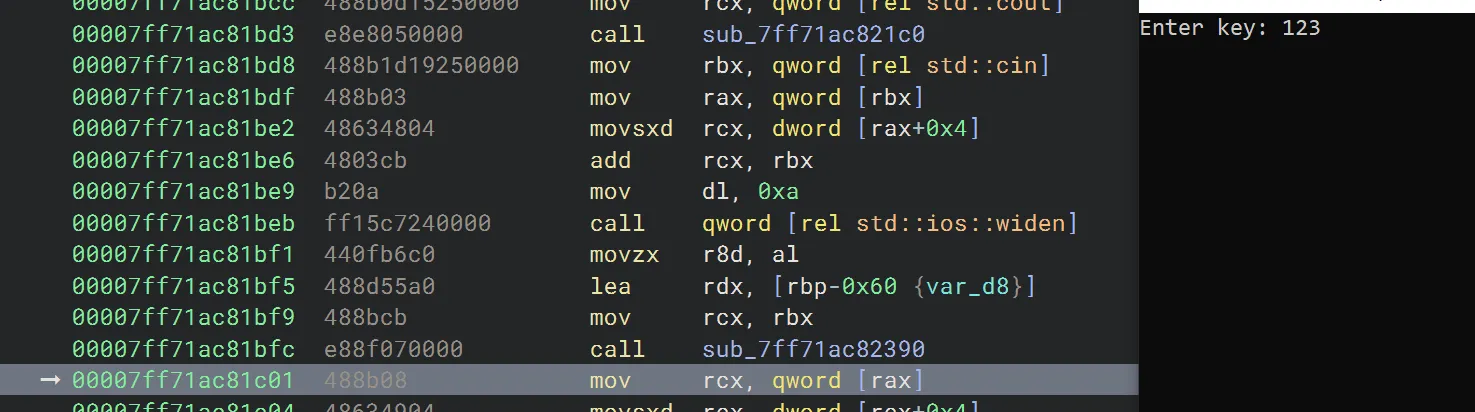 Now we’ve bypassed the timing check and started going into the key construction logic!