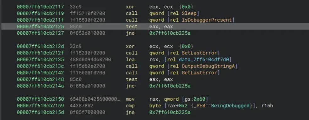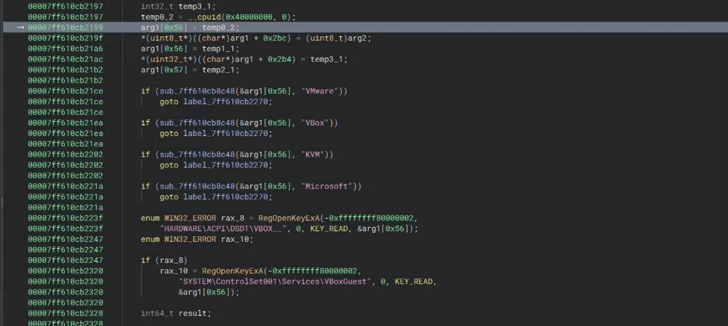 Then we should meet the anti-VM checks. Since I’m not using a VM here, I’ll just skip this part. If you’re doing all of this in a VM, you should be able to bypass these checks pretty easily (similar to those above)