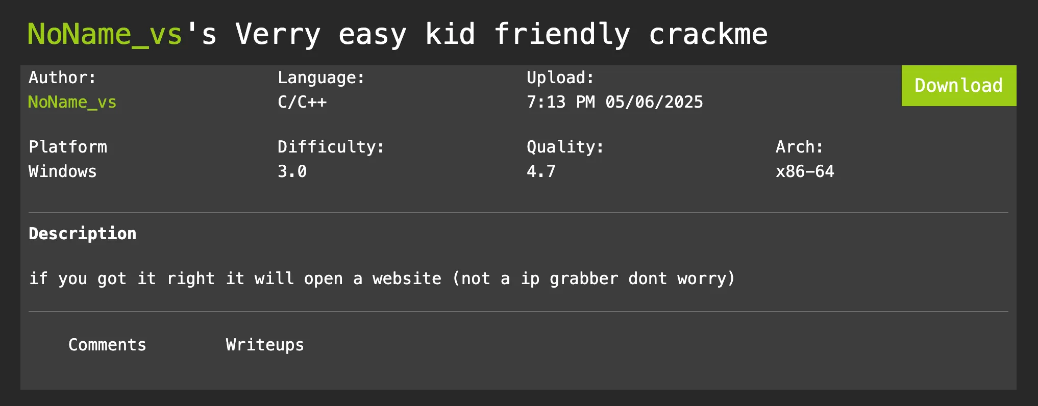 Overall, solving this crackme is super fun, and it’s cool to see how people implemented so many different anti-debugger/VM checks!