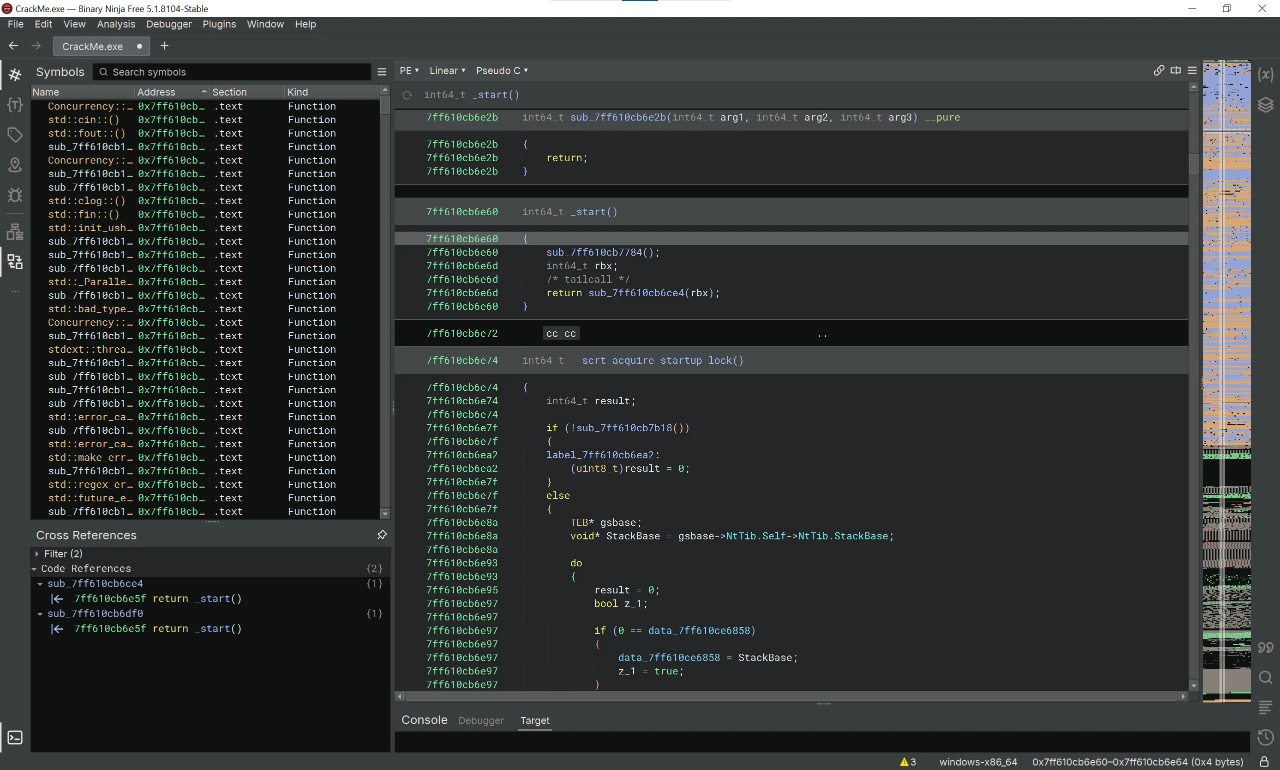 We’re going to load the crackme into Binary Ninja and start debugging.
