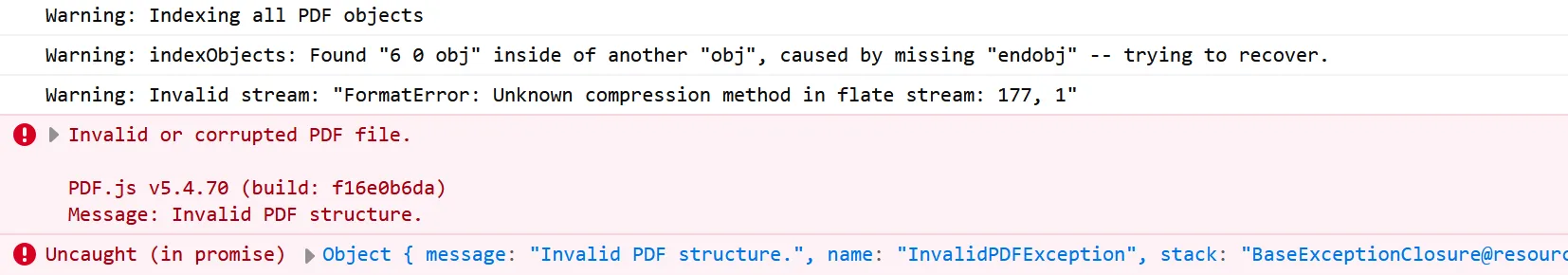 The challenge gives us a corrupted PDF file. I tried opening it in several browsers and even some PDF viewer apps but none worked.