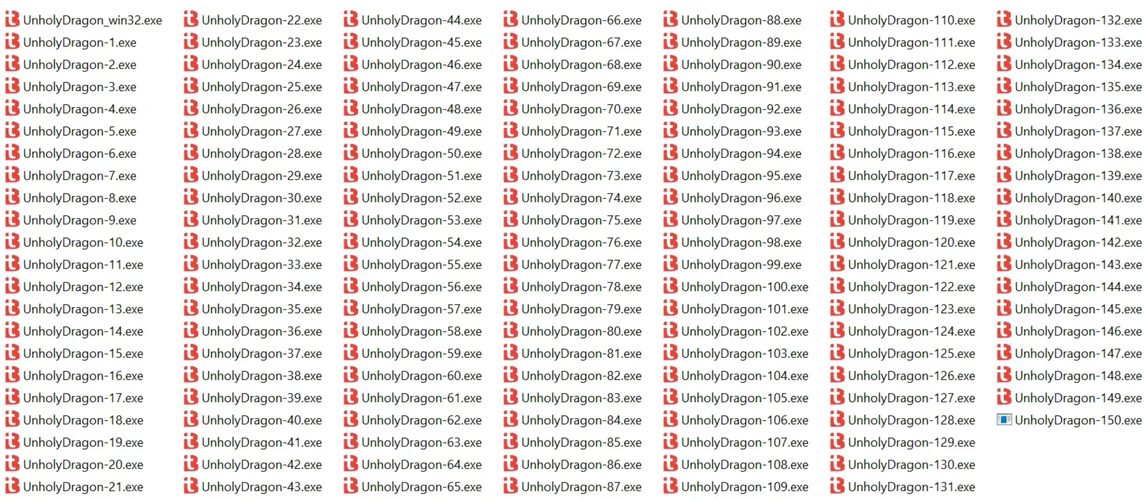 Later I discovered that you can actually rename the binary to any name, except UnholyDragon-1.exe though UnholyDragon-154.exe, to create the other 150 clones.