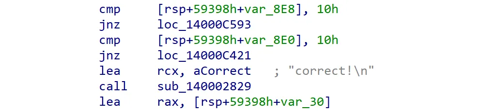 cmp [rsp+59398h+var_XXXXX], <value>instructions. - After each